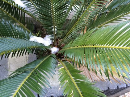 アパートの庭の植物の上に雪が(=゚ω゚)ノ