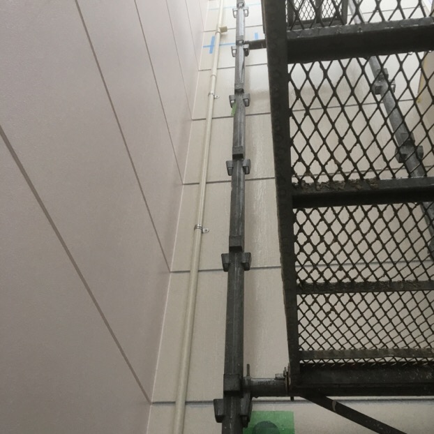 エアコンのドレンホースからの配管を固定作業(^ω^)