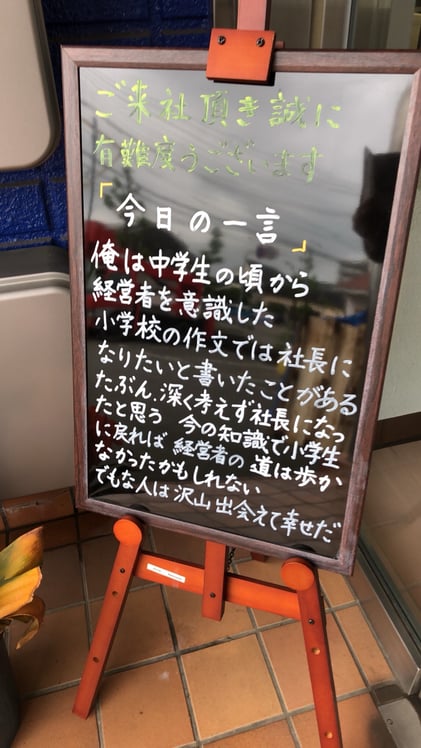 TAKESHI DIARY · 2018/04/25 今日の一言 俺は中学生の頃から経営者を意識した 小学校の作文では社長になりたいと書いたことがある たぶん、深く考えず社長になったと思う 今の知識で小学生に戻れば 経営者の道は歩かなかったかもしれない でもな人に沢山出会えて幸せだ tagPlaceholderカテゴリ: コメントをお書きください コメント: 0