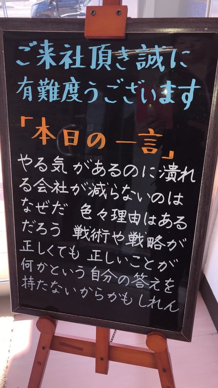 TAKESHI DIARY · 2019/08/07 今日のひとこと やる気があるのに潰れる会社が 減らないのはなぜだろう 色々理由はあるだろう 戦術や戦略が正しくても 正しいことが何かという自分の答えを 持たないからかもしれん tagPlaceholderカテゴリ: コメントをお書きください コメント: 0