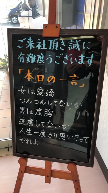 TAKESHI DIARY · 2019/09/18 今日のひとこと 女は愛嬌 つんつんしてないか 男は度胸 遠慮してないか 人生一度きり思いきってやれよ tagPlaceholderカテゴリ: コメントをお書きください コメント: 0