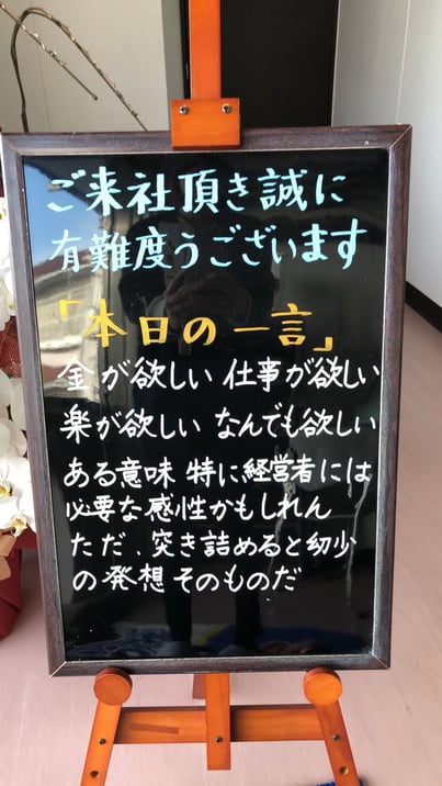 TAKESHI DIARY · 2019/12/10 今日のひとこと 金が欲しい 仕事が欲しい 楽が欲しい なんでも欲しい ある意味 特に経営者には 必要な感性かもしれん ただ、突き詰めると 幼少の発想 そのものだ tagPlaceholderカテゴリ: コメントをお書きください コメント: 0