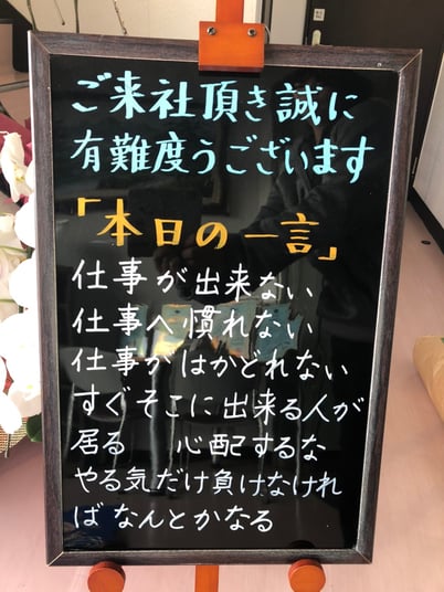TAKESHI DIARY · 2019/12/16 今日のひとこと 仕事が出来ない 仕事へ慣れない 仕事がはかどれない すぐそこに 出来る人が居る 心配するな やる気だけ負けなければ なんとかなる tagPlaceholderカテゴリ: コメントをお書きください コメント: 0