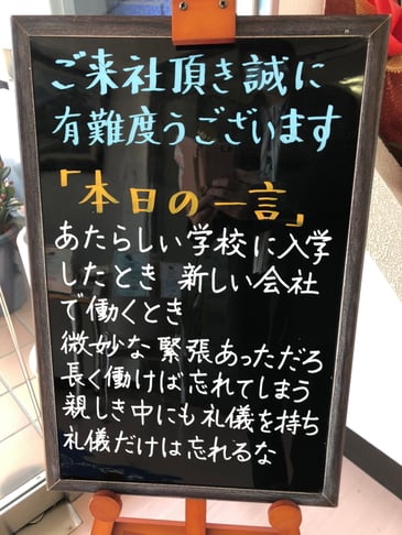 TAKESHI DIARY · 2020/04/16 20200416今日のひとこと あたらしい学校に入学したとき 新しい会社で働くとき 微妙な緊張あっただろ 長く働けば忘れてしまう 親しき中にも礼儀を持ち 礼儀だけは忘れるな tagPlaceholderカテゴリ: コメントをお書きください コメント: 0